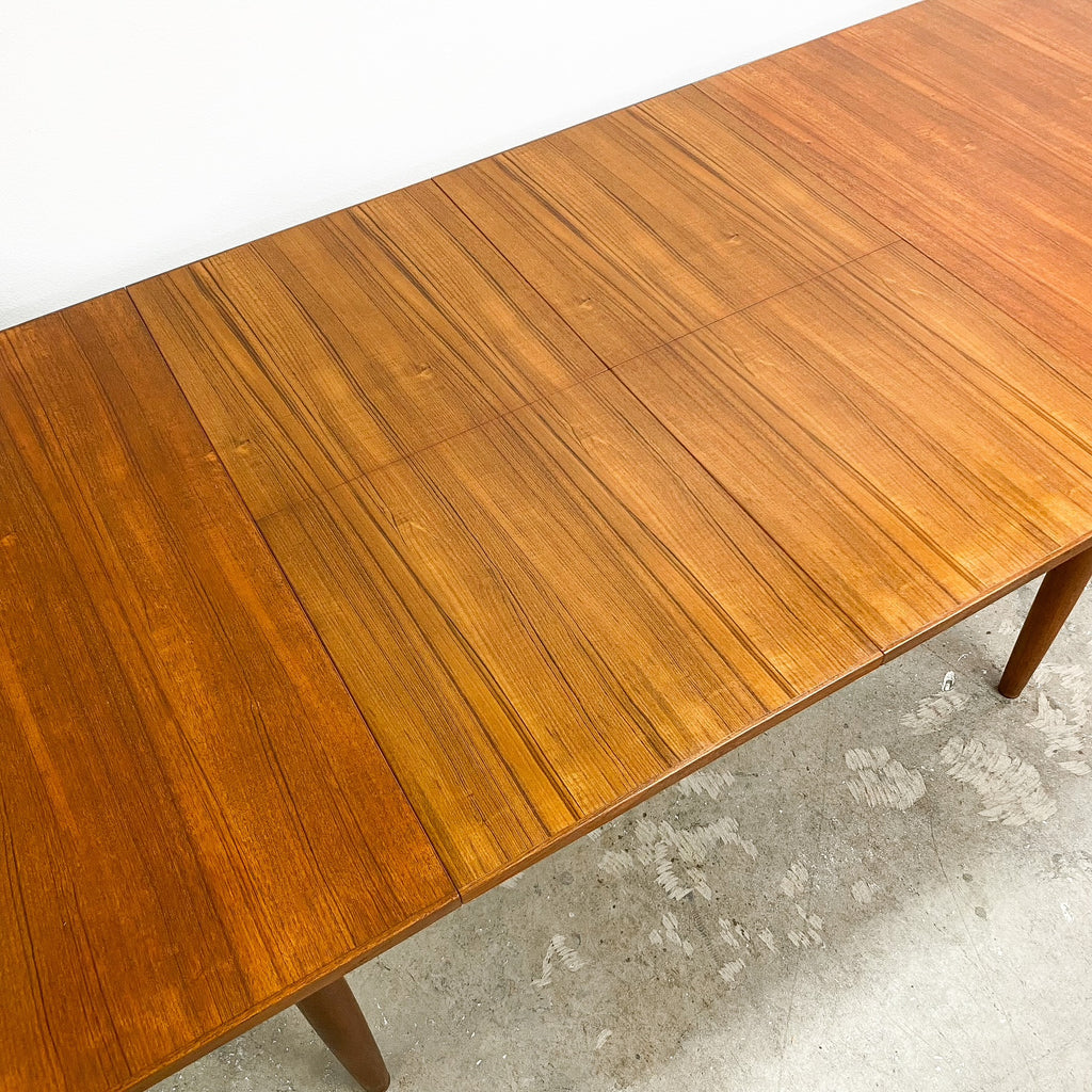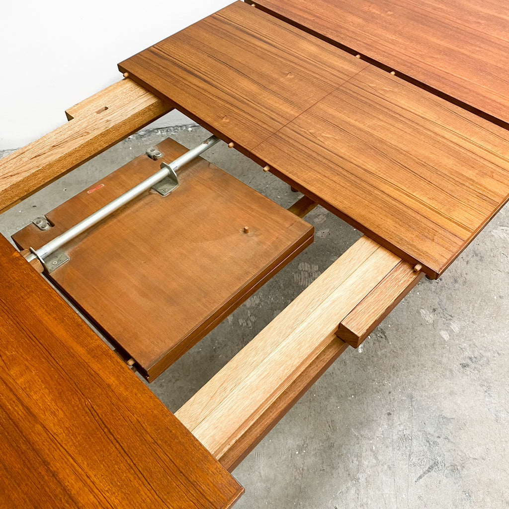 This Mid Century Chiswell teak dining extension table is the largest version Chiswell manufactured. It has 2 butterfly extensions that fold out from the center of the table. You can opt to fold out just one extension or two depending on your requirements. The table top is in very good condition for its age with no real obvious scratches or marks, there is some minor colour difference between the unextended top and the extension as you would expect. This table is in excellent vintage condition.