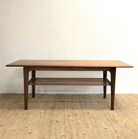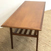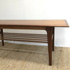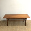 Professionally Restored to Showroom Condition this gorgeous Parker Coffee table features Slat shelf under and has rich golden orange teak wood grain.